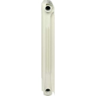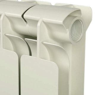 Радиаторы STOUT Bravo собираются из отдельных секций, которые изготавливаются из качественного алюминиевого сплава методом литья под давлением. Каждая секция представляет собой единый монолит из двух коллекторов и связывающего их оребрения, внутри которого проходит вертикальный канала овального сечения. Особая форма оребрения и канала обеспечивают высокие теплотехнические показатели радиатора и низкое гидравлическое сопротивление. В отверстиях коллекторов выполнена трубная резьба размером 1". Резьба служит для соединения секций между собой в радиаторы различной длины с помощью стальных резьбовых ниппелей. Геометрия ниппельных соединений и параметры прокладок гарантируют надежную герметичность собранного радиатора. Наружная поверхность секции радиатора окрашена порошковой эмалью белого цвета.