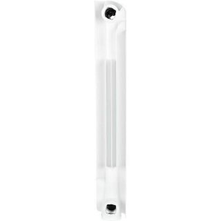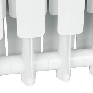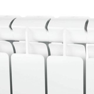 Радиаторы STOUT Bravo собираются из отдельных секций, которые изготавливаются из качественного алюминиевого сплава методом литья под давлением. Каждая секция представляет собой единый монолит из двух коллекторов и связывающего их оребрения, внутри которого проходит вертикальный канала овального сечения. Особая форма оребрения и канала обеспечивают высокие теплотехнические показатели радиатора и низкое гидравлическое сопротивление. В отверстиях коллекторов выполнена трубная резьба размером 1". Резьба служит для соединения секций между собой в радиаторы различной длины с помощью стальных резьбовых ниппелей. Геометрия ниппельных соединений и параметры прокладок гарантируют надежную герметичность собранного радиатора. Наружная поверхность секции радиатора окрашена порошковой эмалью белого цвета.