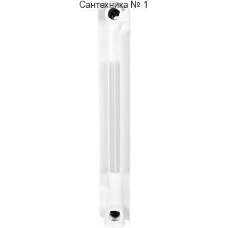 Радиаторы STOUT Bravo собираются из отдельных секций, которые изготавливаются из качественного алюминиевого сплава методом литья под давлением. Каждая секция представляет собой единый монолит из двух коллекторов и связывающего их оребрения, внутри которого проходит вертикальный канала овального сечения. Особая форма оребрения и канала обеспечивают высокие теплотехнические показатели радиатора и низкое гидравлическое сопротивление. В отверстиях коллекторов выполнена трубная резьба размером 1". Резьба служит для соединения секций между собой в радиаторы различной длины с помощью стальных резьбовых ниппелей. Геометрия ниппельных соединений и параметры прокладок гарантируют надежную герметичность собранного радиатора. Наружная поверхность секции радиатора окрашена порошковой эмалью белого цвета.