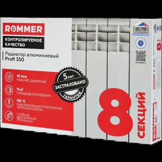Радиатор алюминиевый секционный Profi 350 8 секций, боковое подключение Ral 9016 ROMMER