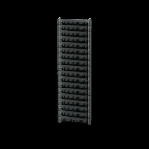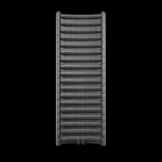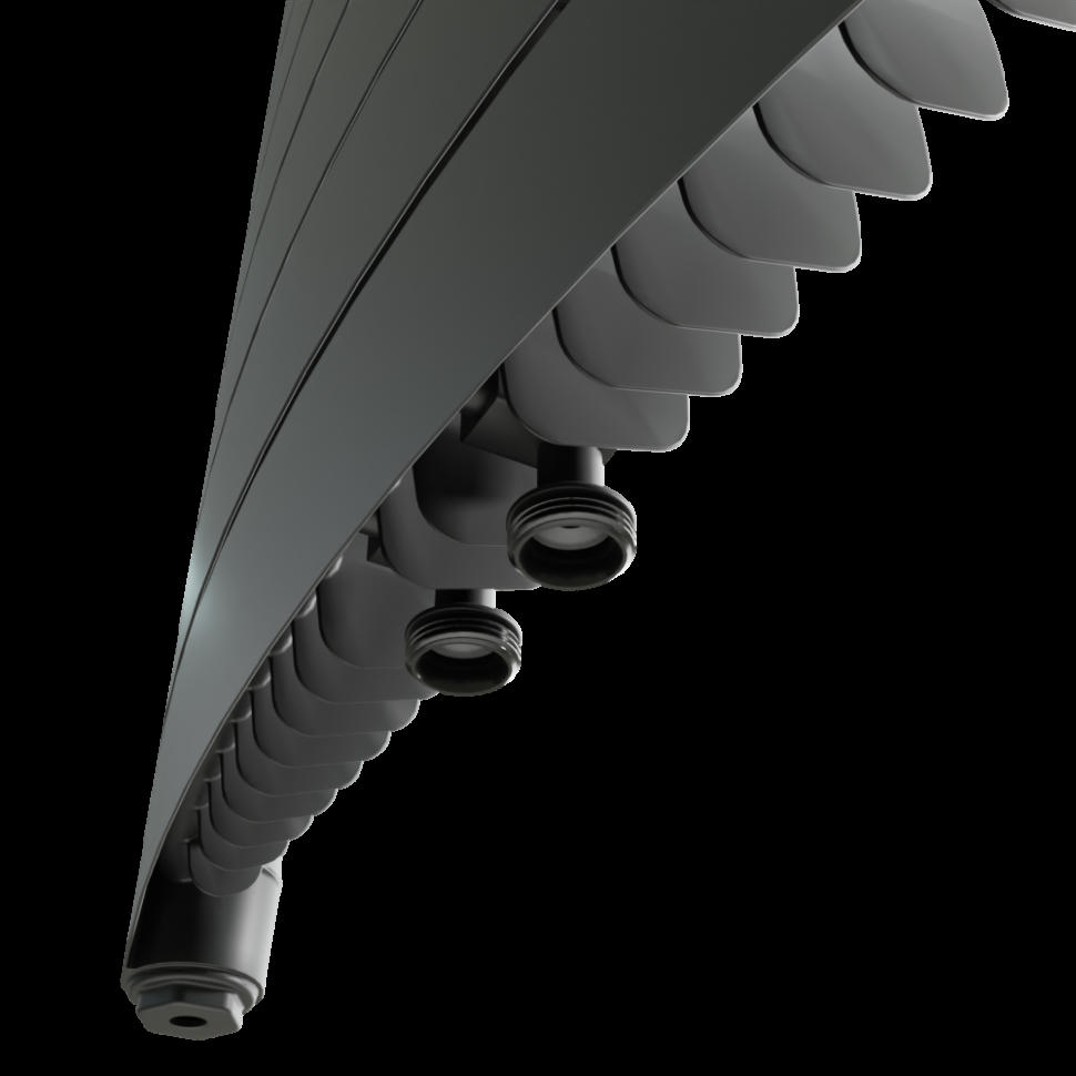 RIFAR CONVEX – это вертикальный биметаллический радиатор: внутренняя часть секции прибора изготовлена из стали марки CORREX, а наружная – из алюминиевого сплава. Секции соединены по особой технологии «гидрозамка», при которой используют уплотнительное кольцо из эластичного этиленпропиленового каучука (EPDM) и ниппель специальной конструкции собственного производства. Оригинальный профиль коллектора и строго цилиндрическая поверхность ниппеля в месте соединения секций позволяют обеспечить классическое гидравлическое уплотнение для высоких (более 150 атм) нагрузок, при этом каучуковое кольцо не имеет контакта с алюминиевым сплавом. Всё это делает прибор очень прочным: рабочее давление –30 атм, испытательное – 45 атм.