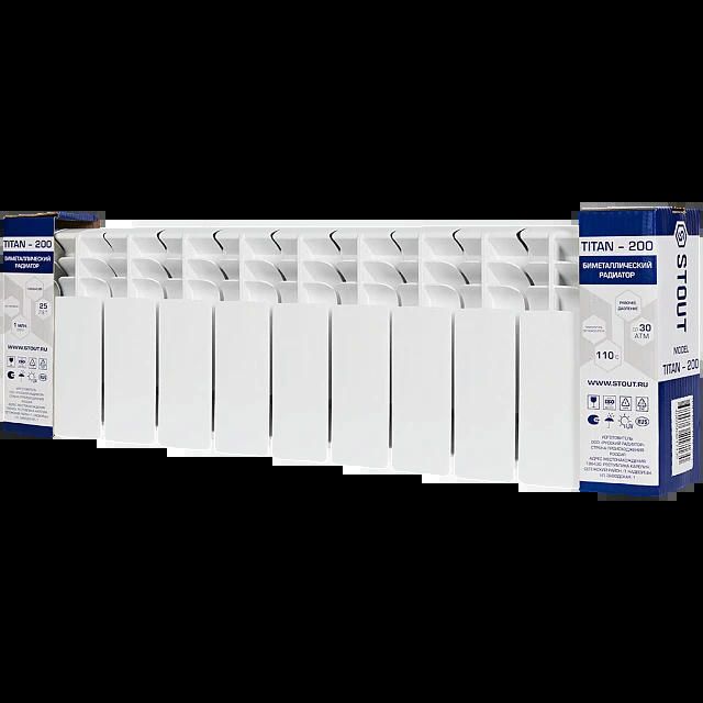 Радиатор биметаллический TITAN 200 11 секций, боковое подключение, белый RAL 9016 STOUT