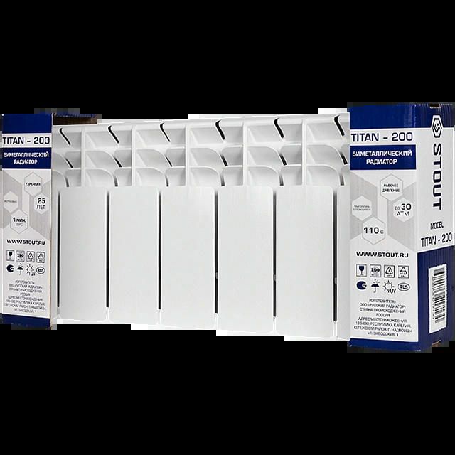 Радиатор биметаллический TITAN 200 6 секций, боковое подключение, белый RAL 9016 STOUT