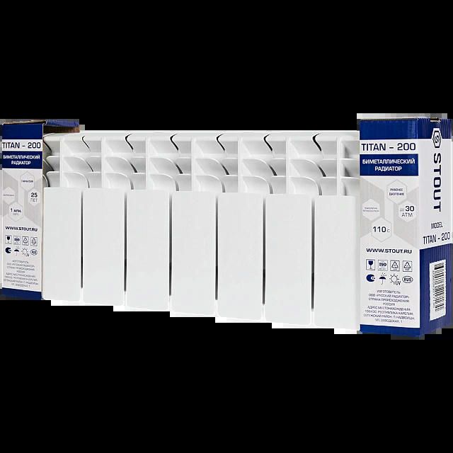 Радиатор биметаллический TITAN 200 9 секций, боковое подключение, белый RAL 9016 STOUT
