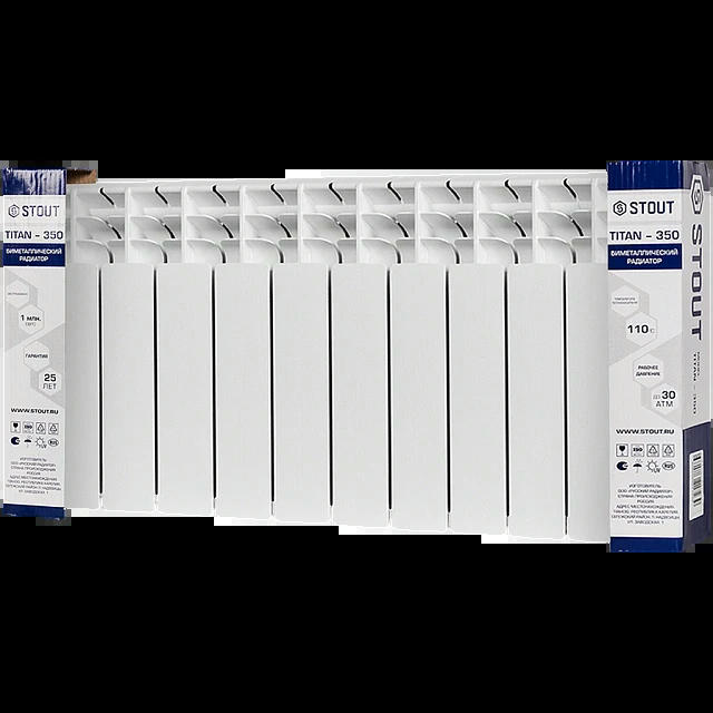 Оцените товар «Радиатор биметаллический TITAN 350 10 секций, боковое подключение, белый RAL 9016 STOUT»
