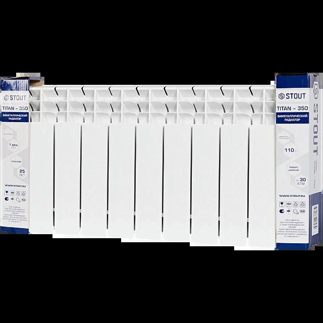 Радиатор биметаллический TITAN 350 11 секций, боковое подключение, белый RAL 9016 STOUT