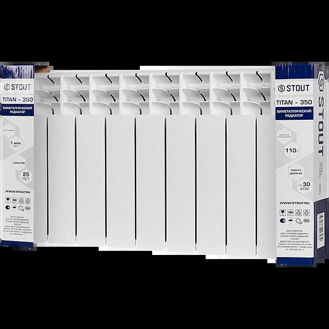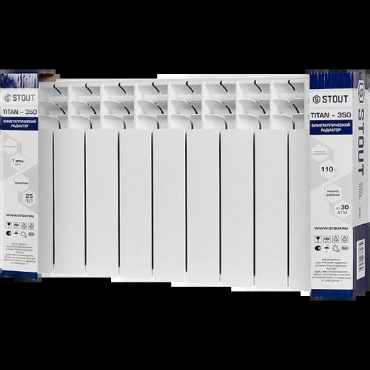 Оцените товар «Радиатор биметаллический TITAN 350 9 секций, боковое подключение, белый RAL 9016 STOUT»