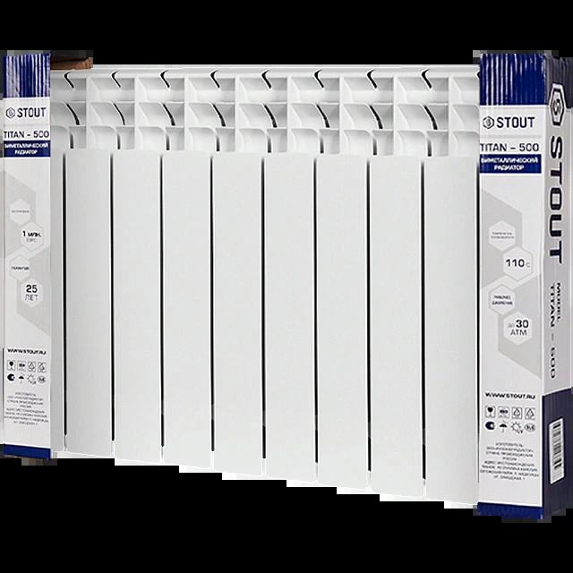 Оцените товар «Радиатор биметаллический TITAN 500 10 секций, боковое подключение, белый RAL 9016 STOUT»