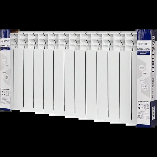 Оцените товар «Радиатор биметаллический TITAN 500 13 секций, боковое подключение, белый RAL 9016 STOUT»