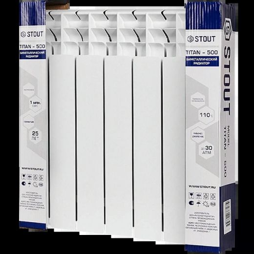 Оцените товар «Радиатор биметаллический TITAN 500 6 секций, боковое подключение, белый RAL 9016 STOUT»
