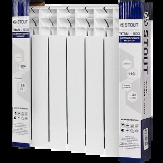 Радиатор биметаллический TITAN 500 6 секций, боковое подключение, белый RAL 9016 STOUT