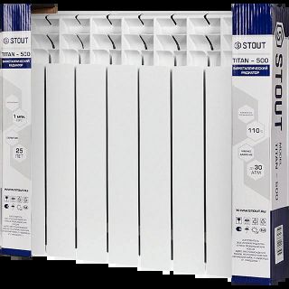 Радиатор биметаллический TITAN 500 7 секций, боковое подключение, белый RAL 9016 STOUT