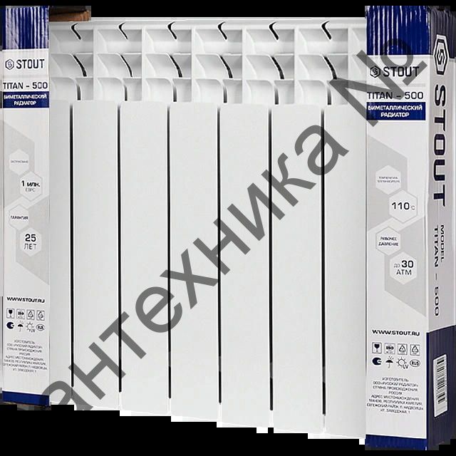Радиатор биметаллический TITAN 500 7 секций, боковое подключение, белый RAL 9016 STOUT