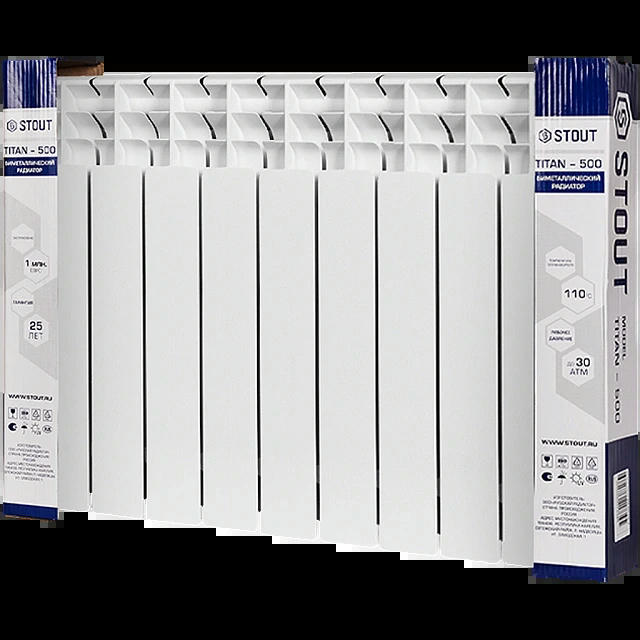 Оцените товар «Радиатор биметаллический TITAN 500 9 секций, боковое подключение, белый RAL 9016 STOUT»