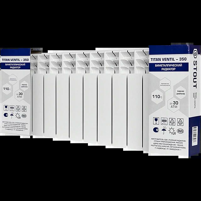 Радиатор биметаллический TITAN VENTIL 350 11 секций, нижнее правое, белый RAL 9016 STOUT