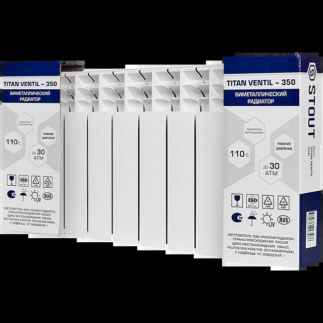 Оцените товар «Радиатор биметаллический TITAN VENTIL 350 8 секций, нижнее правое, белый RAL 9016 STOUT»