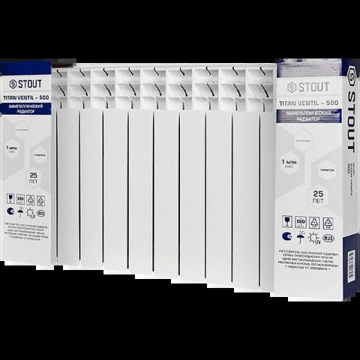 Оцените товар «Радиатор биметаллический TITAN VENTIL 500 11 секций, нижнее правое, белый RAL 9016 STOUT»
