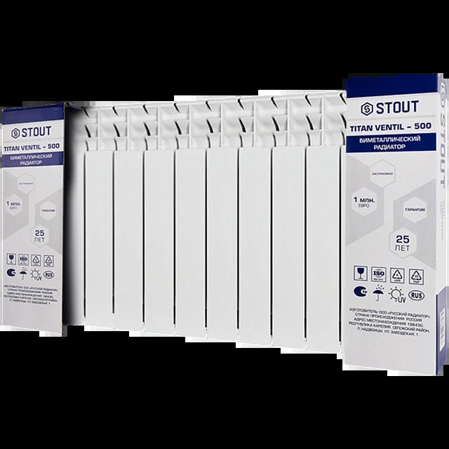 Оцените товар «Радиатор биметаллический TITAN VENTIL 500 13 секций, нижнее правое, белый RAL 9016 STOUT»