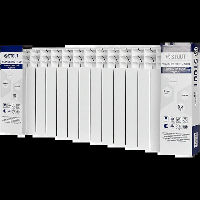 Оцените товар «Радиатор биметаллический TITAN VENTIL 500 14 секций, нижнее правое, белый RAL 9016 STOUT»