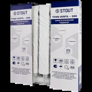 Радиатор биметаллический TITAN VENTIL 500 5 секций, нижнее правое, белый RAL 9016 STOUT