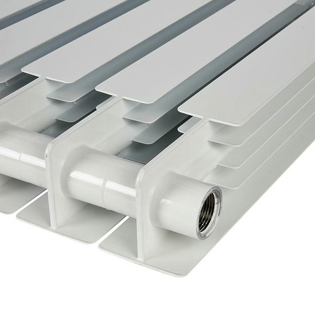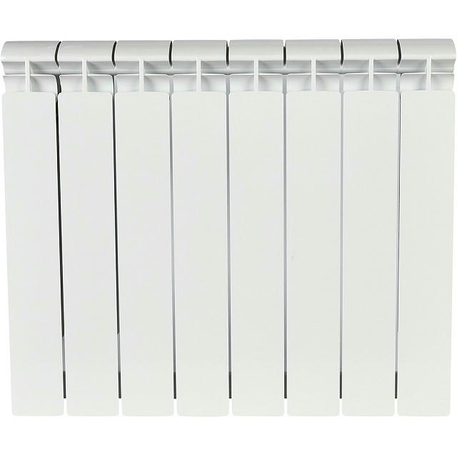 Оцените товар «Радиатор биметаллический секционный ALPHA 500 8 секций, боковое подключение Ral 9016 STOUT»