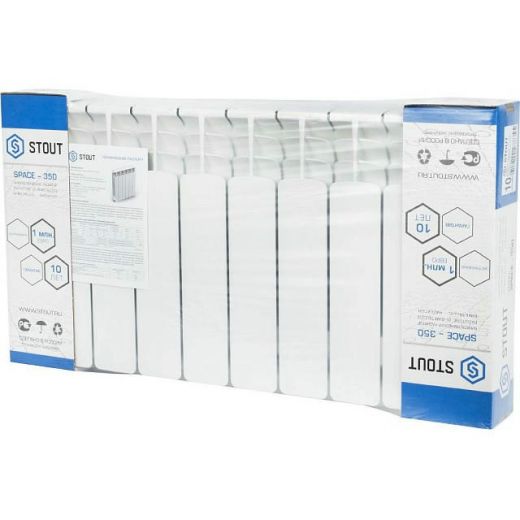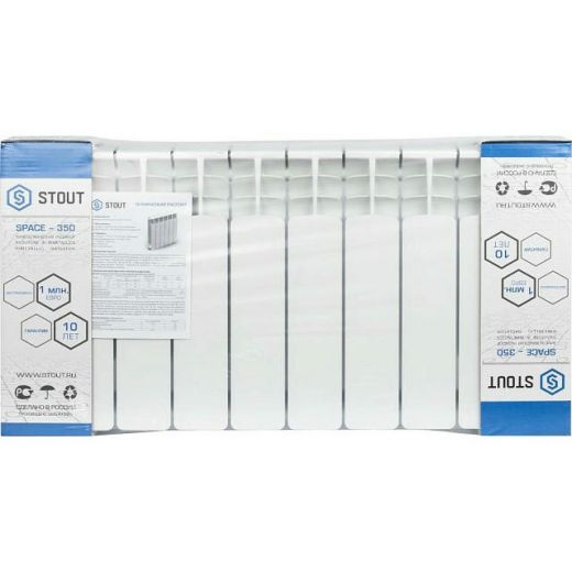 Оцените товар «Радиатор биметаллический секционный Space 350 10 секций, боковое подключение STOUT»