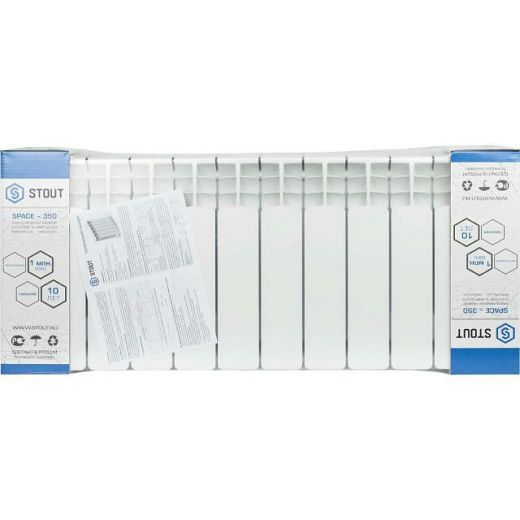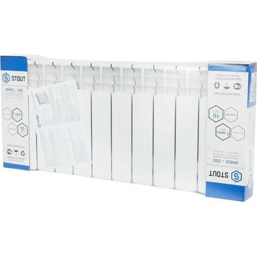 Оцените товар «Радиатор биметаллический секционный Space 350 12 секций, боковое подключение STOUT»