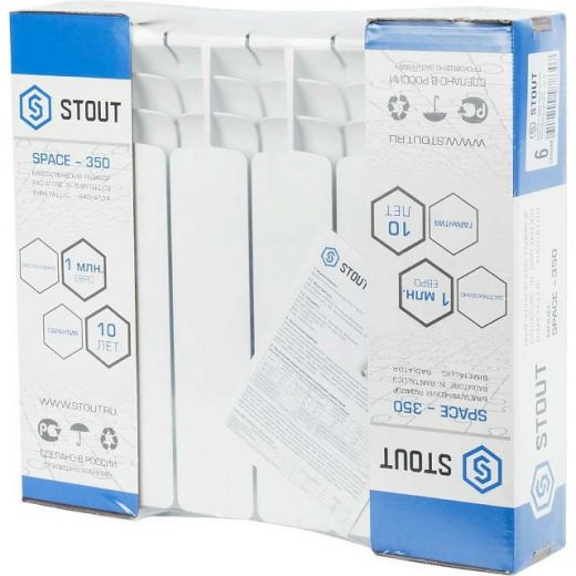 Радиатор биметаллический секционный Space 350 6 секций, боковое подключение STOUT