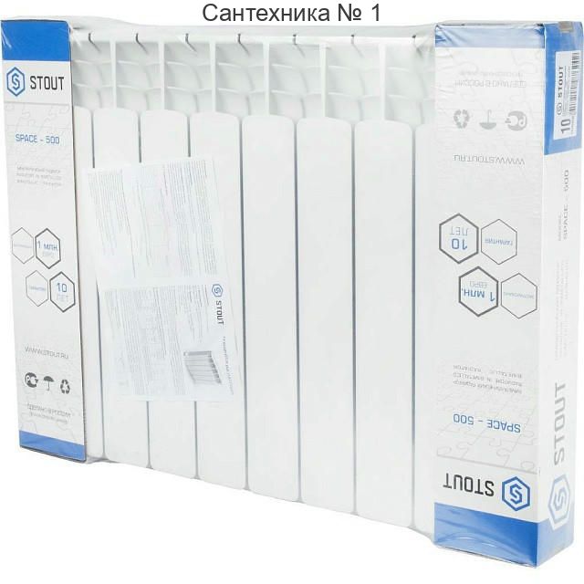 Радиатор биметаллический секционный Space 500 10 секций, боковое подключение STOUT
