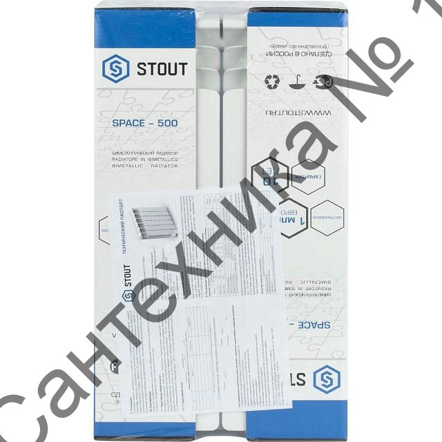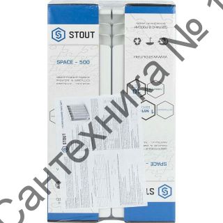 Радиатор биметаллический секционный Space 500 4 секции, боковое подключение STOUT