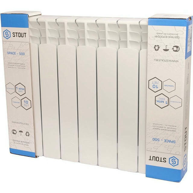 Биметаллические секционные радиаторы STOUT Space предназначены для эксплуатации в системах водяного отопления зданий и сооружений. Расчетная температура теплоносителя - 135 С, рабочее избыточное давление – 2 МПа. Повышенная надежность сборки радиатора обеспечивается за счет особой геометрии межсекционных соединений и параметров силиконовых прокладок.