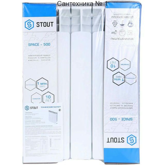 Радиатор биметаллический секционный Space Ventil 500 5 секций, нижнее правое подключение Ral 9016 STOUT