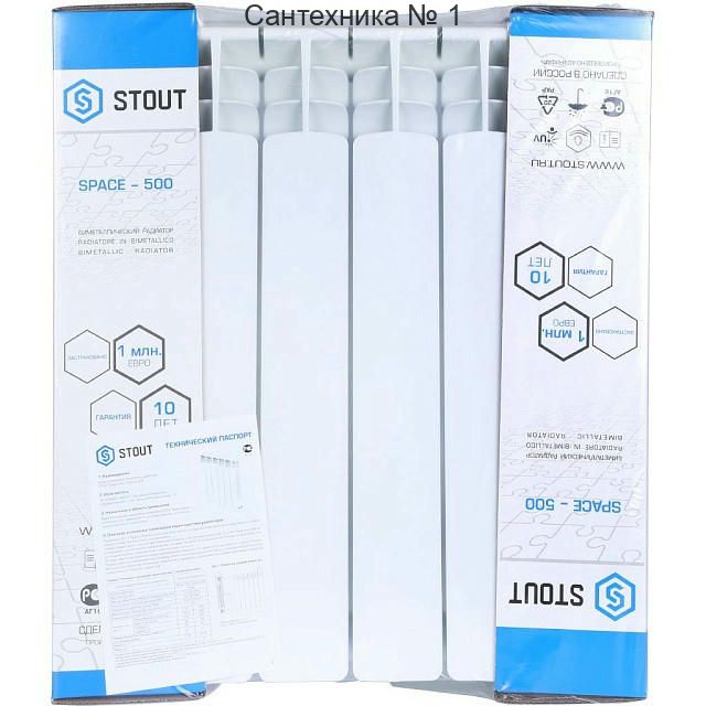 Радиатор биметаллический секционный Space Ventil 500 6 секций, нижнее правое подключение Ral 9016 STOUT