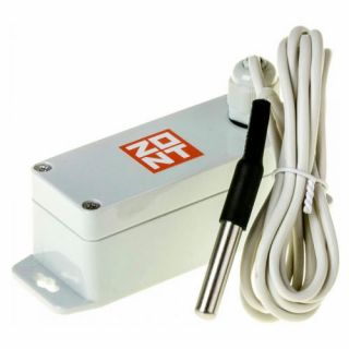 Радиодатчик температуры теплоносителя ZONT МЛ-785 в оригинальном пластиковом корпусе имеет выносной сенсор помещенный в металлическую колбу и предназначен для измерения температуры теплоносителя и ретрансляции данных на радиомодуль ZONT МЛ-590. Датчик применяется в составе систем автоматики ZONT и GSM сигнализаций Mega SX. Измерение температуры теплоносителя выполняется с помощью сенсора Sensirion, установленного внутри металлической колбы, размещенной на шлейфе, подключенном к корпусу радиодатчика через герметичный ввод. Датчик производит периодические измерения с фильтрацией данных.