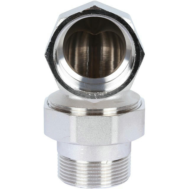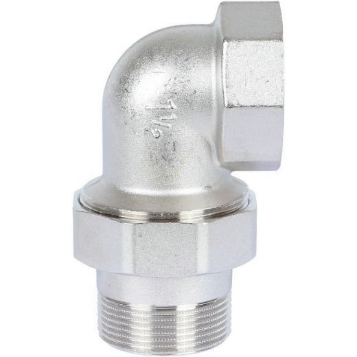 Разъемное угловое соединение "американка" ВН 1 1/4, уплотнение под гайкой o-ring кольцо, никелированное STOUT