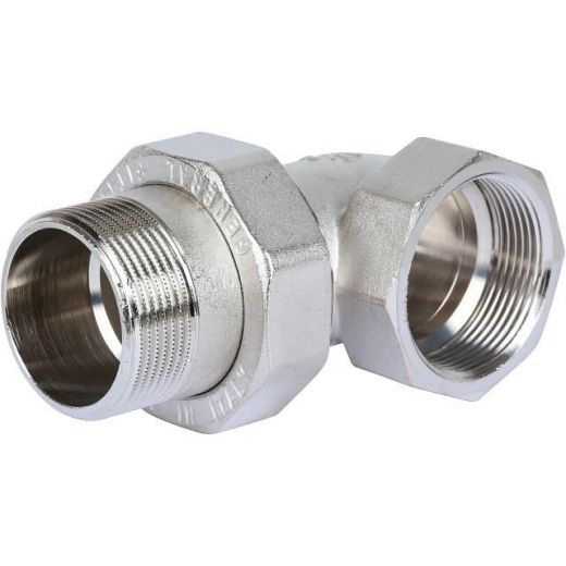 Оцените товар «Разъемное угловое соединение "американка" ВН 1 1/4, уплотнение под гайкой o-ring кольцо, никелированное STOUT»