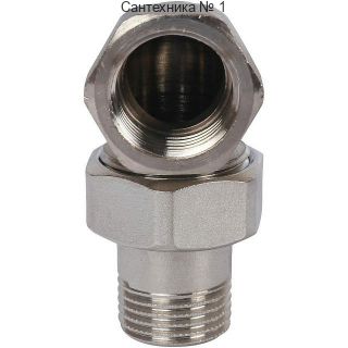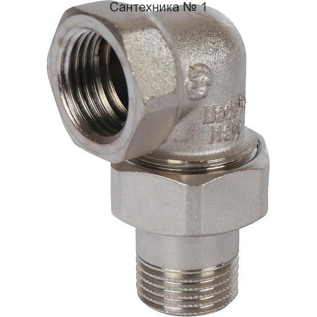 Разъемное угловое соединение "американка" ВН 1/2, уплотнение под гайкой o-ring кольцо, никелированное STOUT