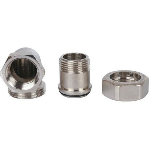 Оцените товар «Разъемное угловое соединение "американка" ВН 3/4, уплотнение под гайкой o-ring кольцо, никелированное STOUT»