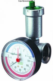Коллекторный узел (промежуточное коллекторное соединение проходной FAR FK 3436 с автоматическим воздухоотводчиком, термоманометром и заглушкой.