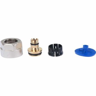 Используется для непосредственного подсоединения труб Rautitan flex к блоку шаровых кранов REHAU, к распределительному коллектору REHAU либо к запорной арматурес евроконусом G 3/4". Состоит из упорной втулки, зажимного кольца и накидной гайки. Материал: латунь согласно DIN EN 12164, DIN EN 12165, DIN EN 12168. Поверхность: никелированная (только накидная гайка).