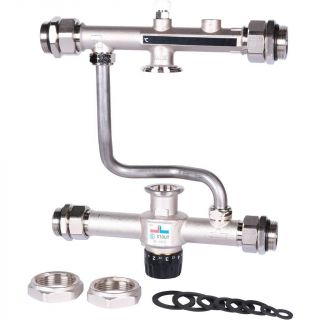 Материал — латунь, максимальное рабочее давление — 10 бар, максимальная рабочая температура — 95°C. Присоединительный размер — 1’'. Имеется термометр и манометр для контроля параметров теплоносителя. Узел легко монтируется и обслуживается. Подходит для использования со всеми типами циркуляционных насосов, монтажная длина которых не превышает 180 мм. Предназначен для систем отопления с радиаторами и «теплыми полами». Безопасное исполнение позволяет экономить электроэнергию и снижает уровень шума в системе.
