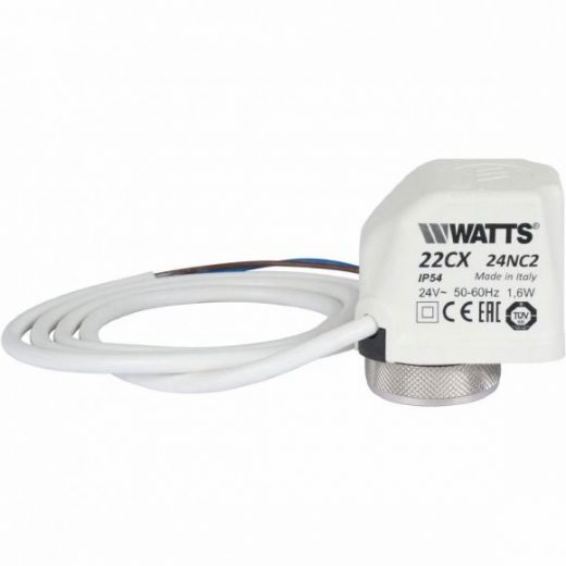 Сервоприводы 22СХ применяются в системах отопления, охлаждения и кондиционирования. Каждому номинальному электропитанию 230В и 24В соответствуют два типа исполнения сервоприводов: нормаль- но открытые и нормально закрытые. Электротермическии? сервопривод применяется с регуляторами с двухточечным управлением. Наиболее обширнои? областью применения является управление темпера- турными зонами в системах напольного отопления совместно с комнатными термостатами WATTS серии? Belux, ВТ, WFHT и Milux.