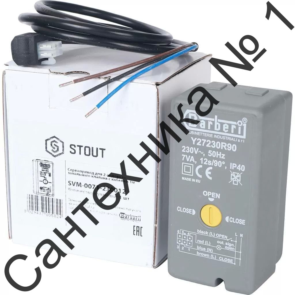 Сервопривод для трехходового зонального клапана STOUT (230V, время движения 12 сек, кабель 1м)