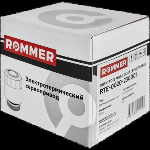 Сервопривод электротермический с поворотным фиксатором штока, нормально закрытый, 230 В ROMMER