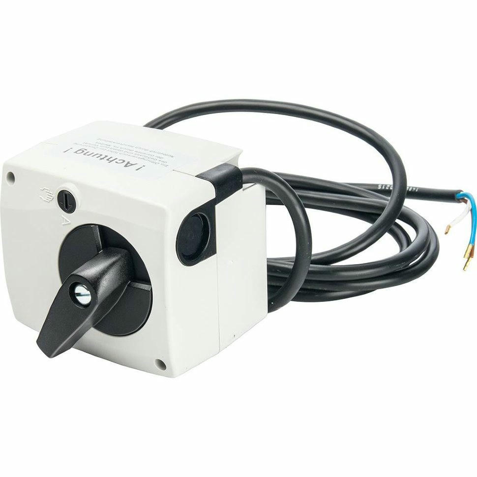 Электропривод Meibes ME 66341 предназначен для работы с контроллерами, которые имеют переключаемый выход (3- позиционное управление). Он устанавливается на поворотные 3-х ходовые смесители насосных групп Meibes MK (или V-MK). Данный привод укомплектован кабелем длиной 2 м. , реверсивным синхронным мотором 220В /50Гц, переключателем режимов ? ручной/автоматический и наглядной шкалой степени открытия/закрытия. Корпус электропривода выполнен из негорючего пластика. Монтажное положение должно быть вертикальным или горизонтальным, не перевернутым.