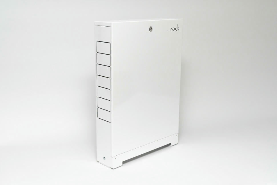 Шкаф распределительный торговой марки AXIS наружный предназначен для монтажа в них распределительных коллекторов для систем отопления, водоснабжения, насосно-смесительных узлов, малых тепловых пунктов и станций поквартирного учёта тепла и расхода воды.