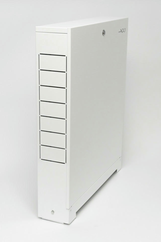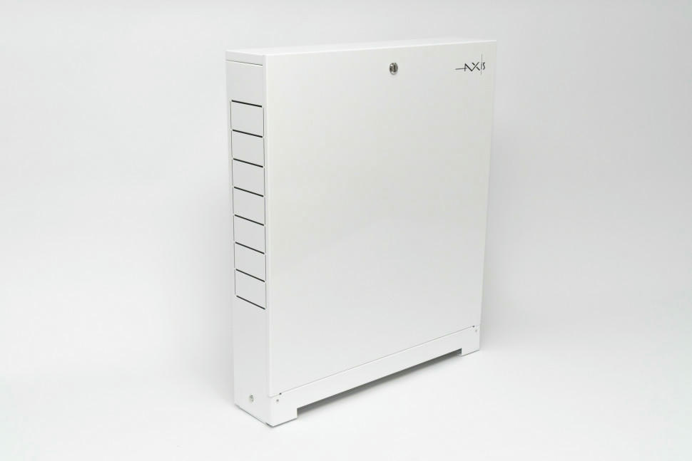 Шкаф распределительный торговой марки AXIS наружный предназначен для монтажа в них распределительных коллекторов для систем отопления, водоснабжения, насосно-смесительных узлов, малых тепловых пунктов и станций поквартирного учёта тепла и расхода воды.