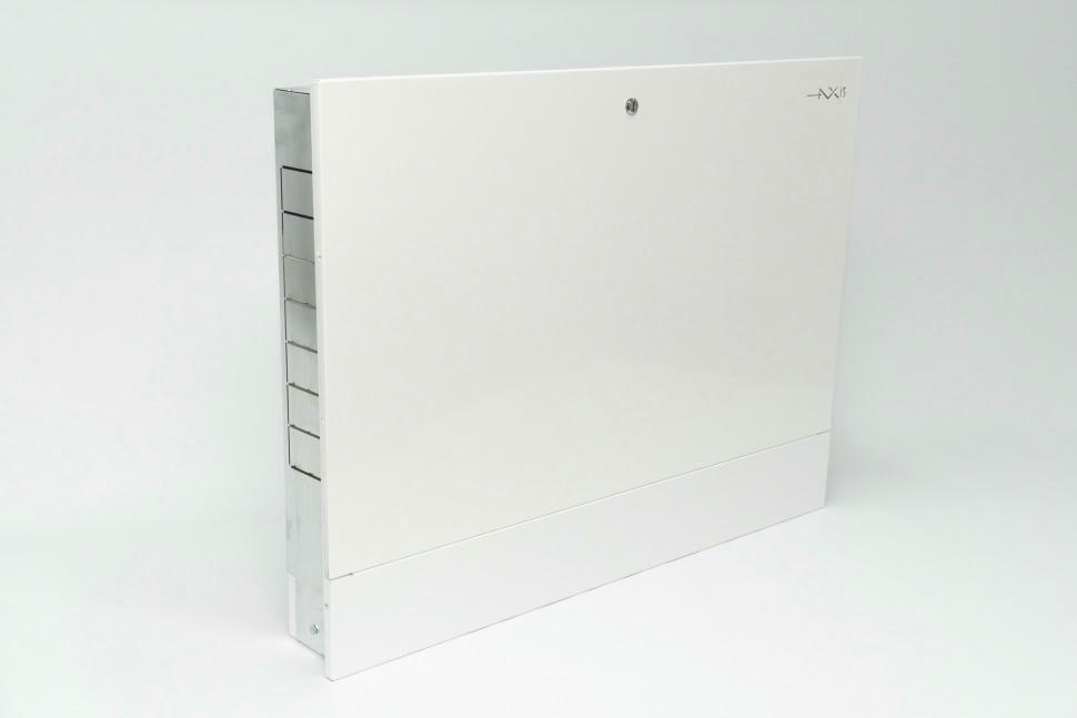 Шкаф распределительный торговой марки AXIS внутренний предназначен для монтажа в них распределительных коллекторов для систем отопления, водоснабжения, насосно-смесительных узлов, малых тепловых пунктов и станций поквартирного учёта тепла и расхода воды.