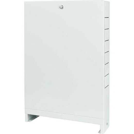 Шкаф распределительный наружный 1-5 выхода ШРН-1 STOUT выполнен из оцинкованной стали, окрашен порошковой краской RAL 9016 с предварительным нанесением фосфатной пленки для придания антикоррозионных свойств изделию. В боковых стенках корпуса шкафа выполнена перфорация, сегменты которой удаляются в любом удобном месте для подсоединения трубопроводов. Шкаф имеет регулировку по высоте до 90 мм за счет выдвижных ножек и по глубине до 70 мм за счет выдвижных рамок. Внутри шкафа установлены универсальные профильные крепления, позволяющие располагать оборудование по всей высоте и ширине шкафа. Шкаф оснащен внутренним замком.