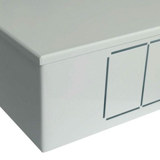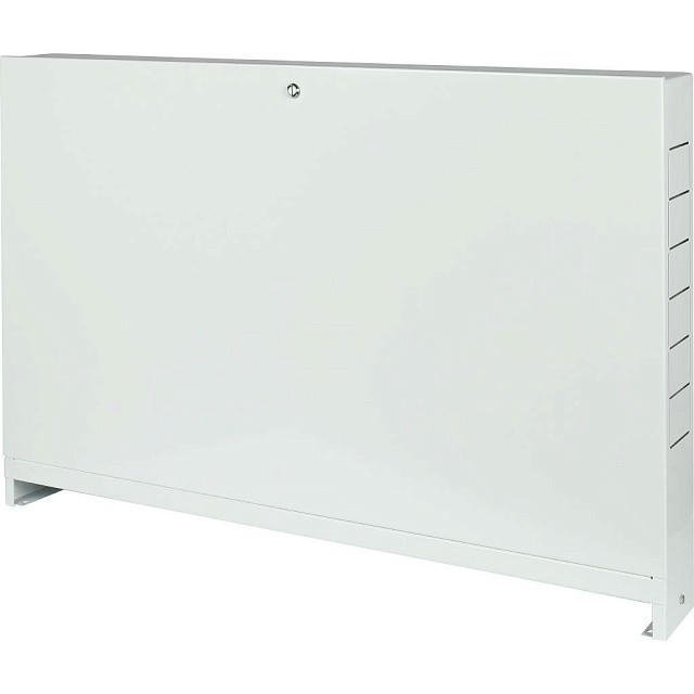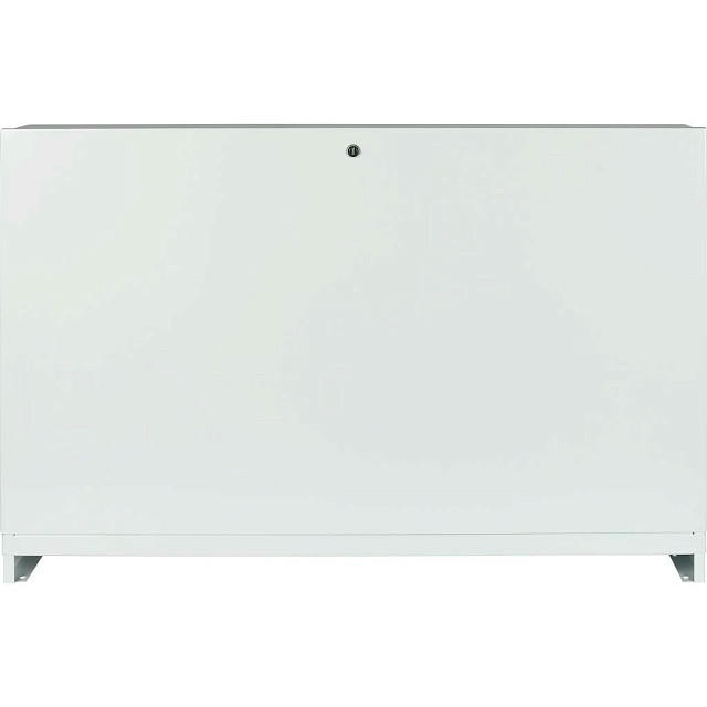 Шкаф распределительный наружный 13-16 выхода ШРН-5 STOUT выполнен из оцинкованной стали, окрашен порошковой краской RAL 9016 с предварительным нанесением фосфатной пленки для придания антикоррозионных свойств изделию. В боковых стенках корпуса шкафа выполнена перфорация, сегменты которой удаляются в любом удобном месте для подсоединения трубопроводов. Шкаф имеет регулировку по высоте до 90 мм за счет выдвижных ножек и по глубине до 70 мм за счет выдвижных рамок. Внутри шкафа установлены универсальные профильные крепления, позволяющие располагать оборудование по всей высоте и ширине шкафа. Шкаф оснащен внутренним замком.
